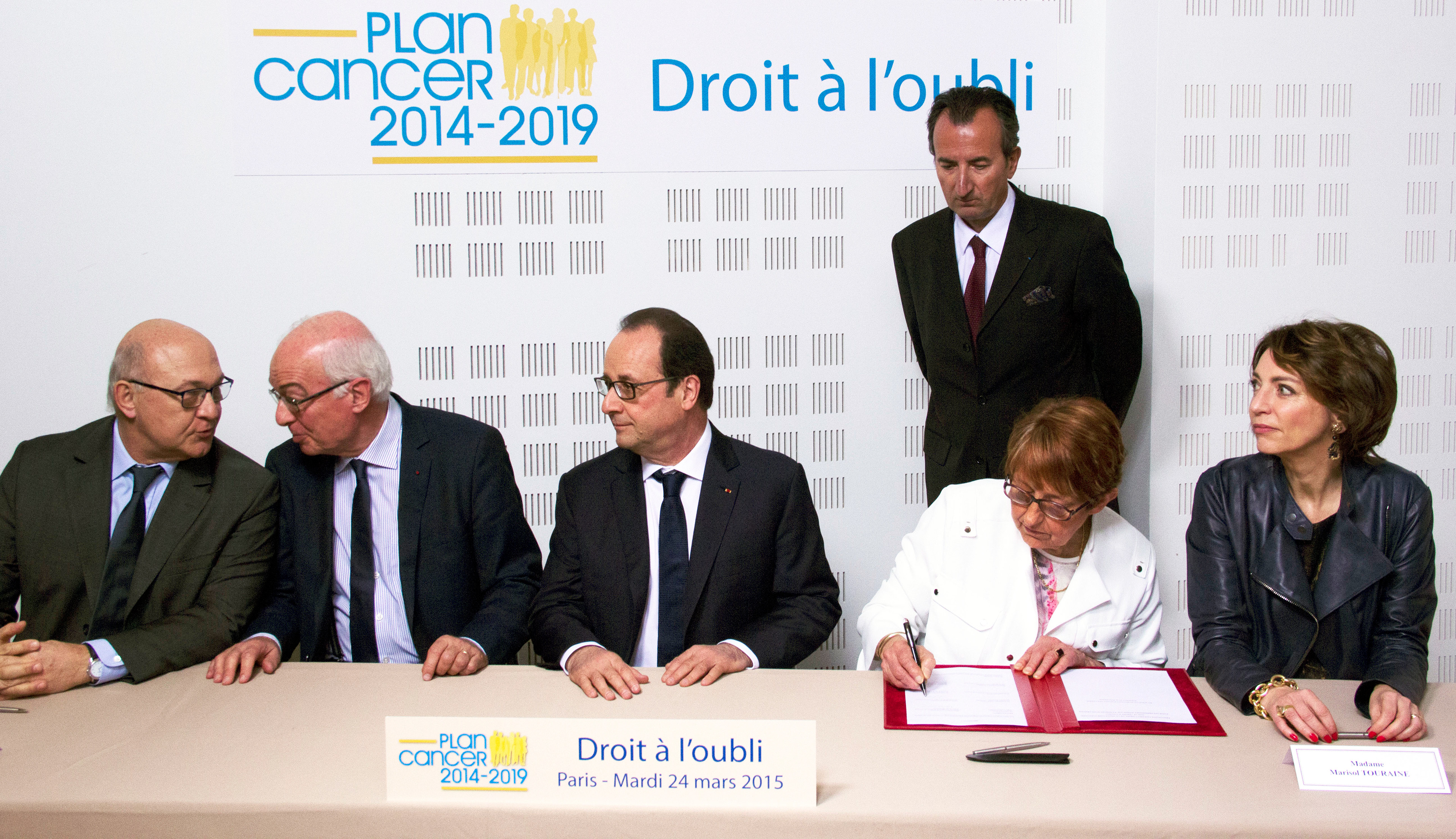 Reportage au siège de la Ligue contre le cancer lors de la venue du président de la République François Hollande pour la signature du protocole d'accord sur le droit à l'oubli pour les personnes atteintes de cancers.